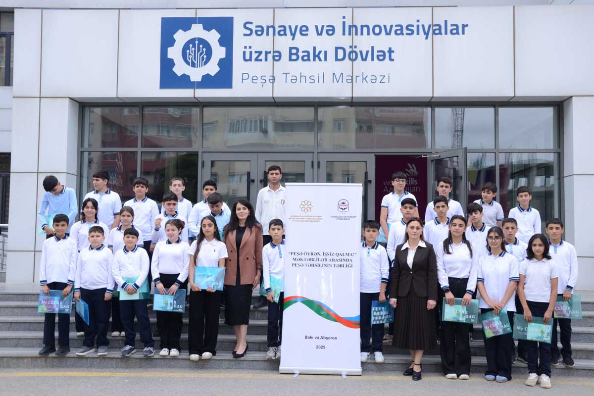 Layihənin eksperti Əsmər Baxışova Sənaye və İnnovasiyalar üzrə Bakı Dövlət Peşə Təhsil Mərkəzində öyrədilən ixtisaslarla bağlı şagirdlərə məlumat verib. Şagirdlər həm doğru sənət seçiminin əhəmiyyəti, respublikamızda peşə təhsili müəssisələri, dövlətin peşə təhsilinin inkişafı istiqamətində gördüyü tədbirlərlə əyani tanış ola biliblər.
