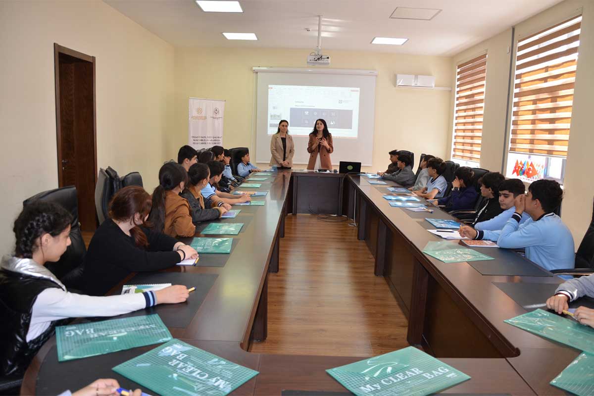 Daha sonra layihənin təlimçisi Əsmər Baxışova Sənaye və İnnovasiyalar üzrə Bakı Dövlət Peşə Təhsil Mərkəzində öyrədilən ixtisaslarla bağlı şagirdlərə məlumat verib. Şagirdlər həm doğru sənət seçiminin əhəmiyyəti, respublikamızda peşə təhsili müəssisələri, dövlətin peşə təhsilinin inkişafı istiqamətində gördüyü tədbirlərlə əyani tanış ola biliblər.