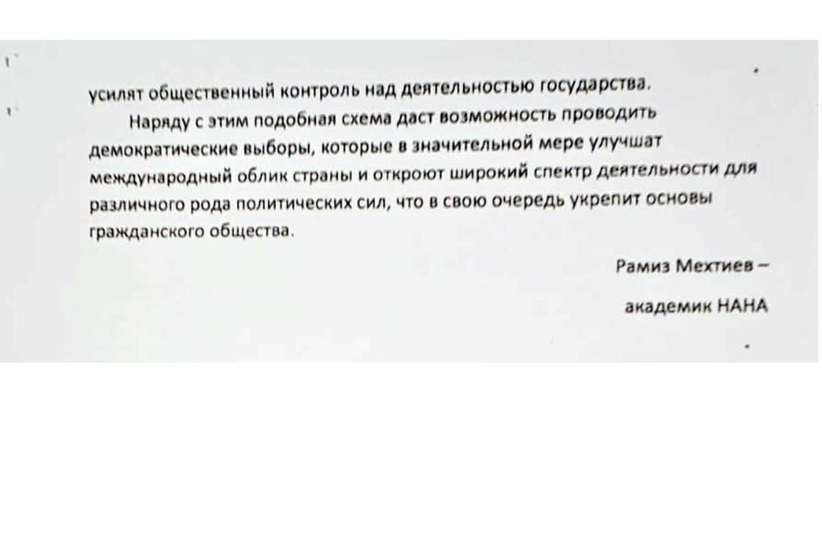 Xüsusi qeyd etmək yerinə düşər ki, belə bir planı həyata keçirmək nə Ramiz Mehdiyevin, nə də onun əlaqə qurduğu dairələrin imkanında deyil. Sadəcə, buna cəhd etmək onun əsl riyakar xislətini nümayiş etdirir.