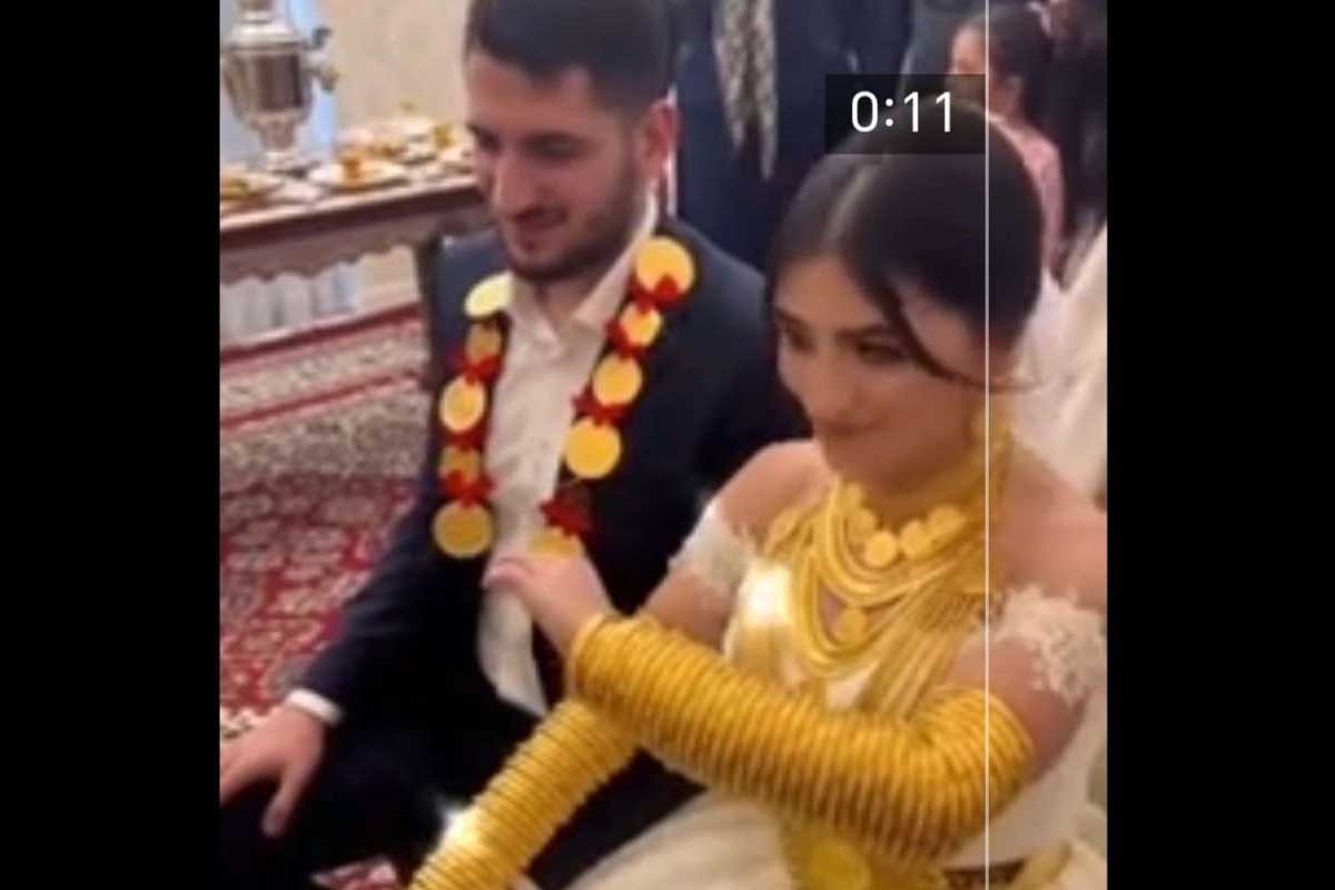 Heftelik.az Bizim.Media-ya istinadla xəbər verir ki, paylaşılan görüntülərdə gəlinin qollarına və boynuna çox sayda ağır və bahalı zinət əşyalarının taxıldığı görünür.