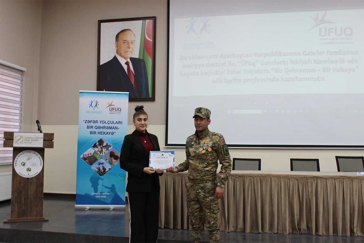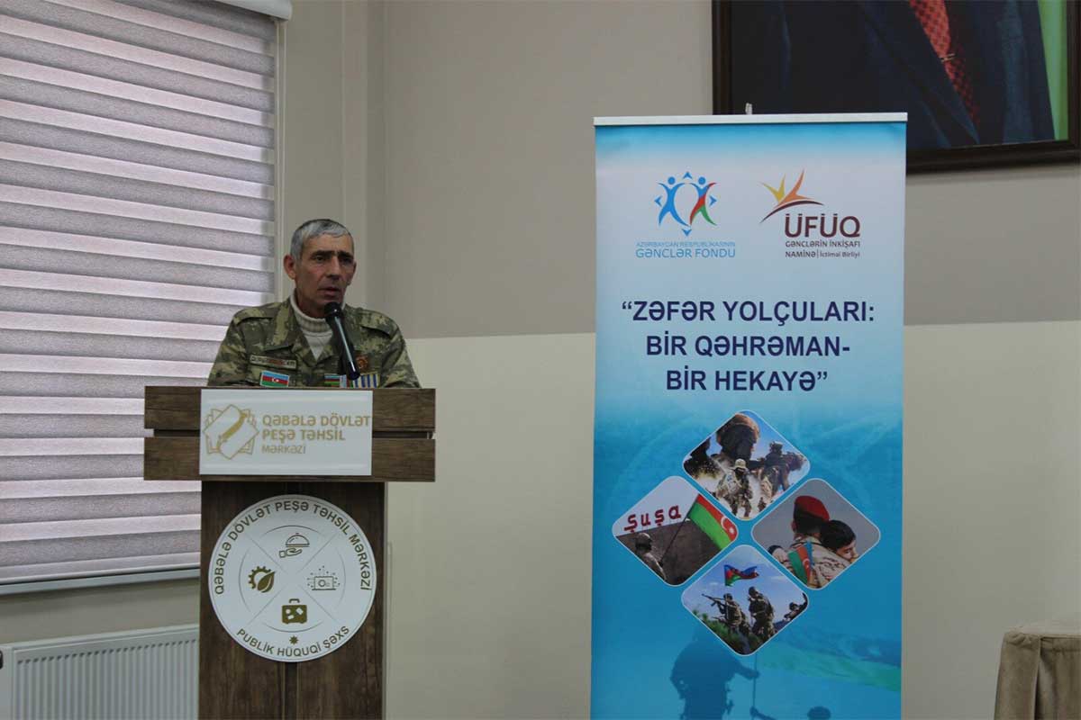 Yanvarın 17-də Azərbaycan Respublikasının Gənclər Fondunun maliyyə dəstəyi ilə “Üfüq” Gənclərin İnkişafı Naminə İctimai Birliyi tərəfindən “Zəfər Yolçuları: Bir Qəhrəman – Bir Hekayə” layihəsi çərçivəsində Vətən müharibəsinə həsr olunmuş maarifləndirici tədbir keçirilib. Tədbir Qəbələ Dövlət Peşə Təhsil Mərkəzində təşkil olunub.