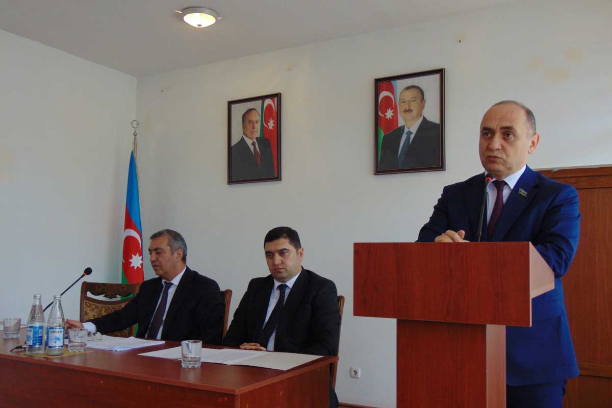 Azərbaycan Respublikası Prezidenti Administrasiyasının məsul işçisi Zöhrab Bağırov, Milli Məclisin deputatı Ceyhun Məmmədov və digər çıxış edənlər rayonun sosial-iqtisadi inkişafı sahəsində görülmüş işlər, əhalinin məşğulluğu, sosial rifahın yaxşılaşdırılması istiqamətində həyata keçirilən tədbirləri yüksək qiymətləndirərək, əldə olunan nailiyyətlərin Azərbaycan Respublikasının Prezidenti, Müzəffər Ali Baş Komandan İlham Əliyevin uğurlu siyasətinin nəticəsi olduğunu vurğulayıblar.