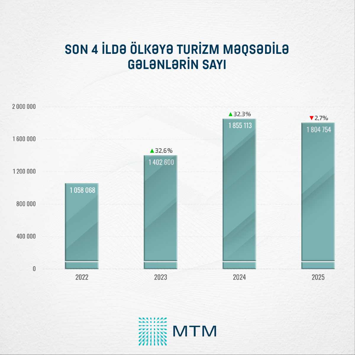 Media Təhlil Mərkəzinin (MTM) Dövlət Statistika Komitəsinin açıqladığı rəsmi məlumatlar əsasında apardığı təhlilə əsasən, 2025-ci ildə Azərbaycana ümumilikdə 2 570 212 nəfər səfər edib.
