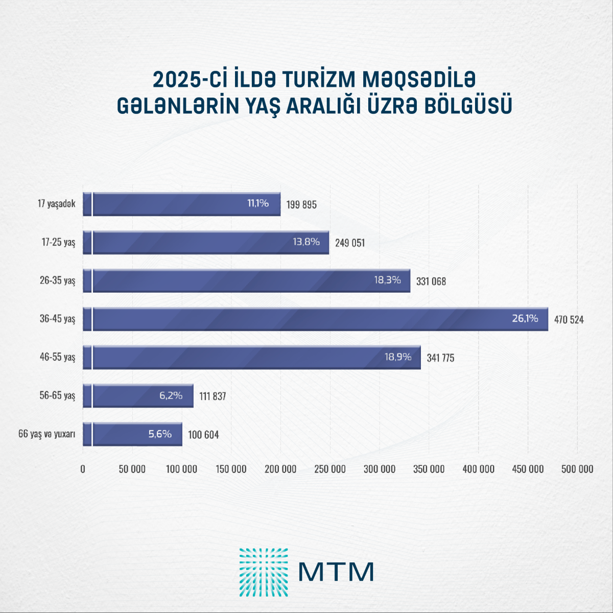Rəsmi məlumatlara əsasən, 2025-ci ildə ölkəyə gələn turistlərin ən böyük hissəsi 36–45 yaş aralığında olub. Bu yaş kateqoriyasında olanların sayı 470 524 nəfərlə ümumi turistlərin 26,1 faizini təşkil edib.