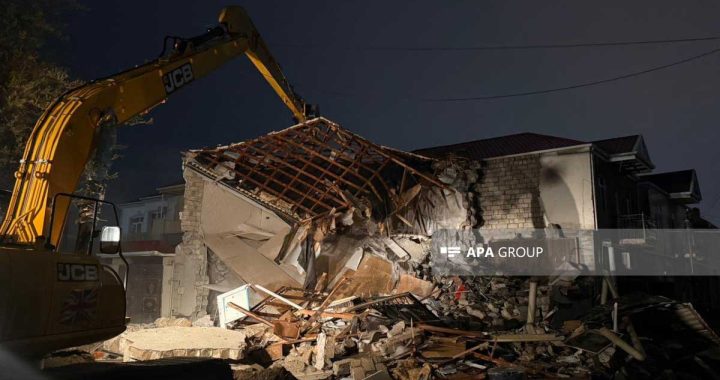 Keşlə qəsəbəsində kollektorda qəzaya səbəb olan evin sökülməsinə başlanıldı – FOTO